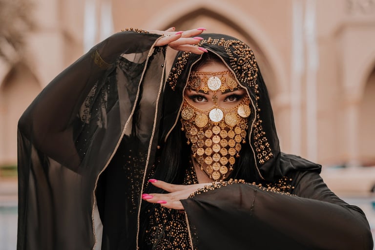Styled shoots with traditional Emirati dress and settings.